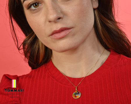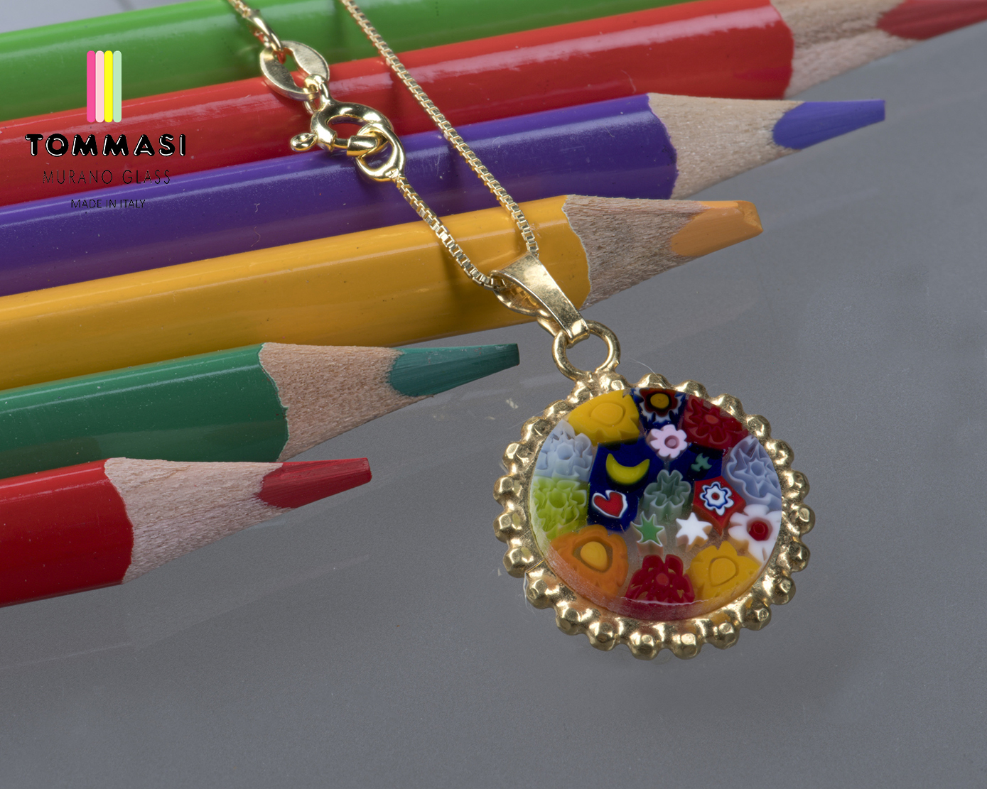 Necklace with glass Murrina Multicolor, frame and necklace in rhodium-plated 925 silver, 45cm. Tommasi Murano certificate and gift box