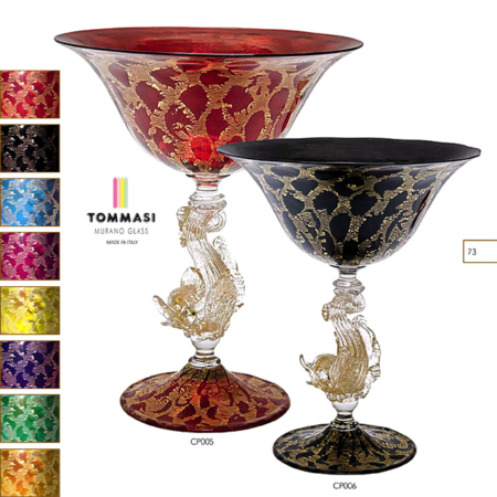 Coppa in vetro di Murano con decorazioni in oro sommerso 24kt,firma del maestro e certificato di garanzia Tommasi Murano Glass inclusa 1 pezzo